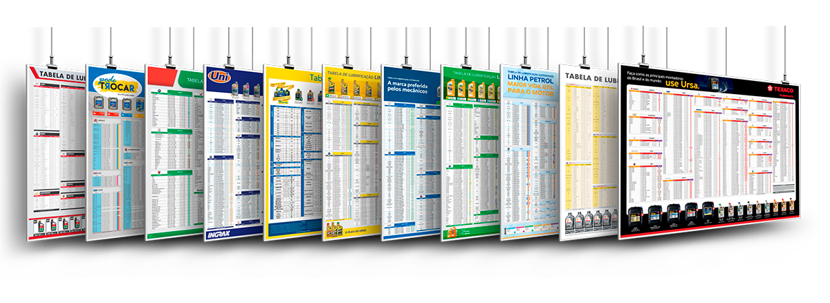 Divulgue sua linha de lubrificantes em tabelas de recomendação e catálogos de produtos. O departamento de Marketing da Inforlube é experiente na produção de material gráfico e digital para o mercado automotivo e de lubrificantes. Catálogos, tabelas de indicação de produtos, manuais, banners e tudo mais que você precisa para que sua marca seja bem posicionada diante da concorrência e reconhecida no mercado.
